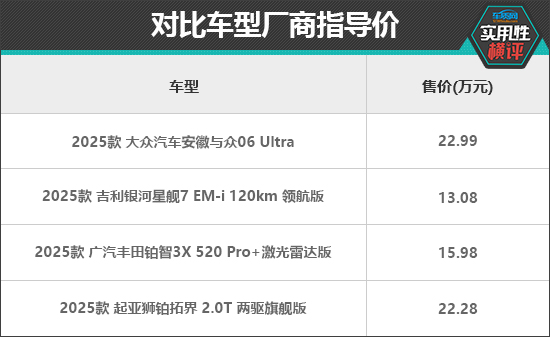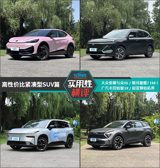 紧凑型SUV凭借均衡的空间表现、适中的价格以及实用的功能,成为众多家庭用户的购车首选。在往期的《日常实用性测试》中,我们曾测试过多款紧凑型SUV。本次,我们将选取大众汽车安徽与众06(以下简称:大众安徽与众06)、吉利银河星舰7 EM-i、广汽丰田铂智3X、起亚狮铂拓界四款车型,通过横向对比,看看哪款车型的实用性表现更加全面。