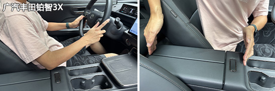 前排中央扶手方面,吉利银河星舰7 EM-i和起亚狮铂拓界采用上掀式设计,而大众安徽与众06和广汽丰田铂智3X则采用对开式设计,使用便利性更好。得益于较大的尺寸以及合理的设计,四款车型的中央扶手在驾驶过程中均可以为驾驶者手肘提供有效支撑。