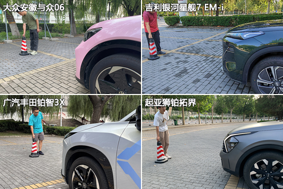 驻车辅助配置方面,在前方驻车雷达测试中,大众安徽与众06最远探测距离达到1.225m,雷达功率表现出色。在最近提示距离方面,吉利银河星舰7 EM-i与同级别车型测试均值更为接近。
