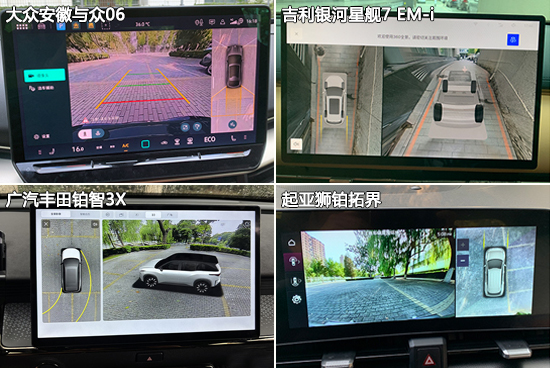 在影像辅助系统方面,四款车型均配备360度全景影像系统,支持多角度查看,并且畸变控制合理,整体表现达到行业主流水平,能够大大减轻泊车时的压力。